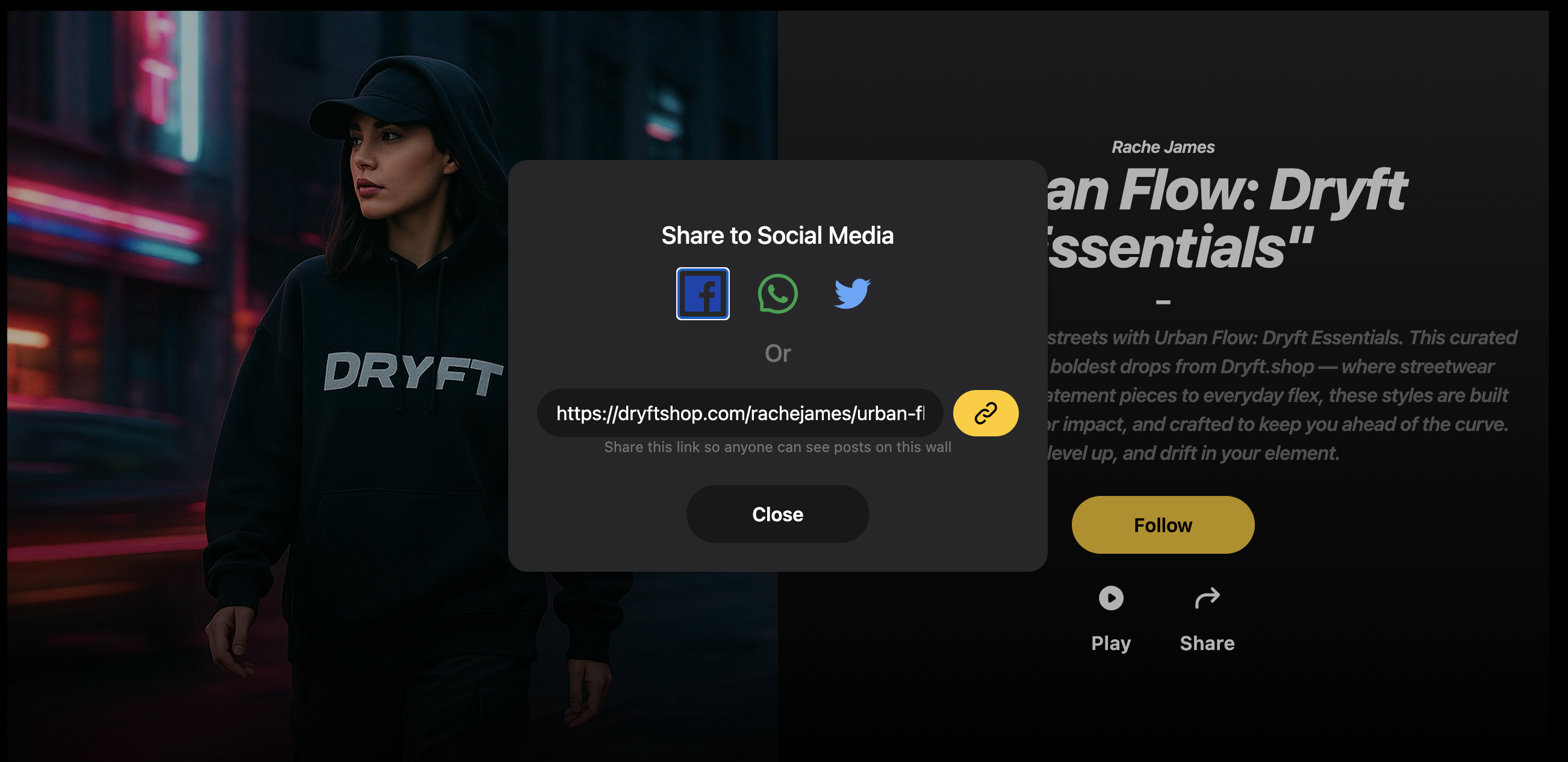 Each collection has a unique link. Share it on Instagram, TikTok, or via text. When someone shops using your link, you earn a commission — no need to carry inventory or handle logistics.